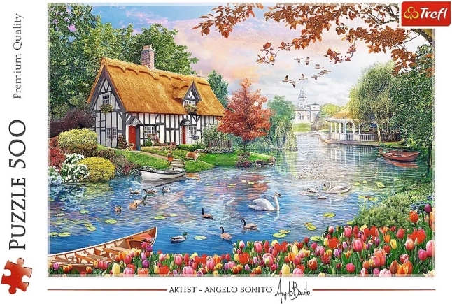 Tauchen Sie ein in die Welt der Kreativität mit Puzzles Stiller Hafen, die nach dem Zusammenfügen ein beeindruckendes Bild nach dem Design des Künstlers Angelo Bonito ergeben. Diese Puzzle bestehen aus 500 Teilen und präsentieren das Bild eines schönen Häuschens am Fluss.