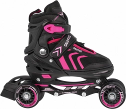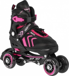 Dieses praktische 4-in-1-Set wächst mit dem Kind und ermöglicht ganzjährigen Fahrspaß – draußen auf Asphalt und in der Halle sowie im Winter auf dem Eis. Dank der 5-stufigen Größenverstellung (29–33) passen sich die Schuhe mühelos an eine Fußlänge von 16,5–20 cm an. Die halbfeste Konstruktion schützt den Knöchel, während eine semipermeable Membran und das Belüftungssystem für ein angenehmes Klima im Schuh sorgen.