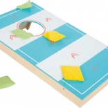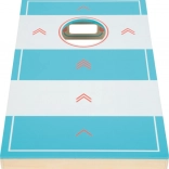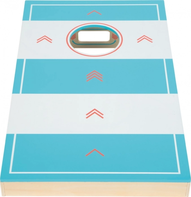 Diese hochwertige Spielplatte aus Holz vereint zwei beliebte Aktivitäten in einem kompakten Format. Auf der einen Seite spielen Sie Cornhole – das Werfen von Stoffbeuteln in eine Öffnung, auf der anderen Seite Tischhockey – das Abschießen des Pucks mithilfe eines Gummibands auf Zielbereiche. Dank der Pfeilmarkierung der Punkte statt Zahlen können selbst jüngere Kinder den Spielstand mitzählen.