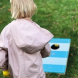 Das Spiel ist perfekt für Kinder ab 5 Jahren und Erwachsene, fördert Hand-Auge-Koordination, Präzision und fairen Wettbewerb. Die robuste Holzkonstruktion gewährleistet Stabilität und Langlebigkeit, die kompakten Maße erleichtern Transport und Aufbewahrung.