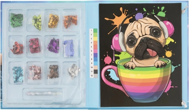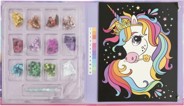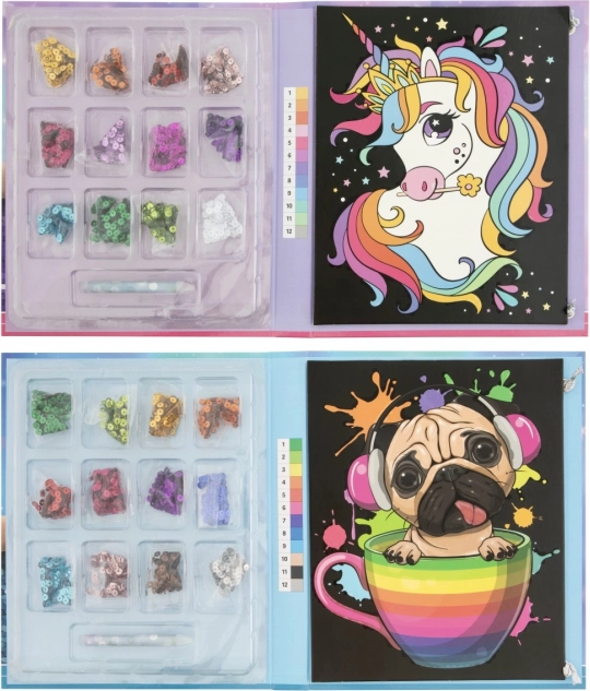 Entdecken Sie eine einfache und spaßige Methode, Kinder fürs Kreativsein zu begeistern. Mit diesem Set zum Malen nach Zahlen entsteht ein schönes Bild mit dem Motiv Einhorn oder Hündchen. Farben werden den Zahlen zugeordnet und mithilfe des Dosiierstifts farbige Plättchen an die richtige Stelle gesetzt.