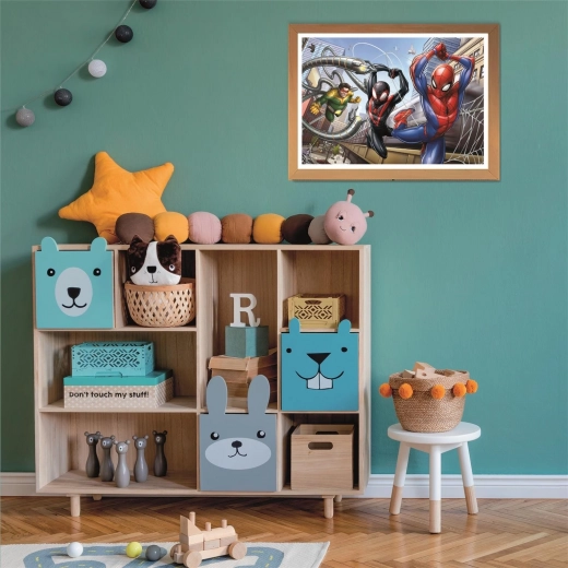 Eine dynamische Szene mit Spider‑Man, Miles Morales und Doctor Octopus begeistert kleine Comicfans und motiviert zum Puzzeln.