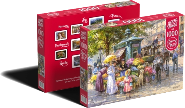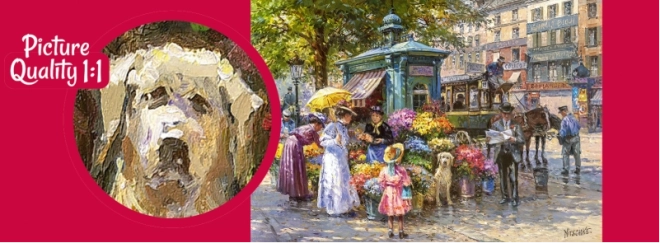 Tauchen Sie ein in die detailreiche Illustration eines lebendigen Blumenmarkts. Das 1000-Teile-Puzzle bietet eine angenehme Herausforderung für Einsteiger und Fortgeschrittene und ist eine hervorragende Möglichkeit, zu entspannen und gleichzeitig die Konzentration zu trainieren.