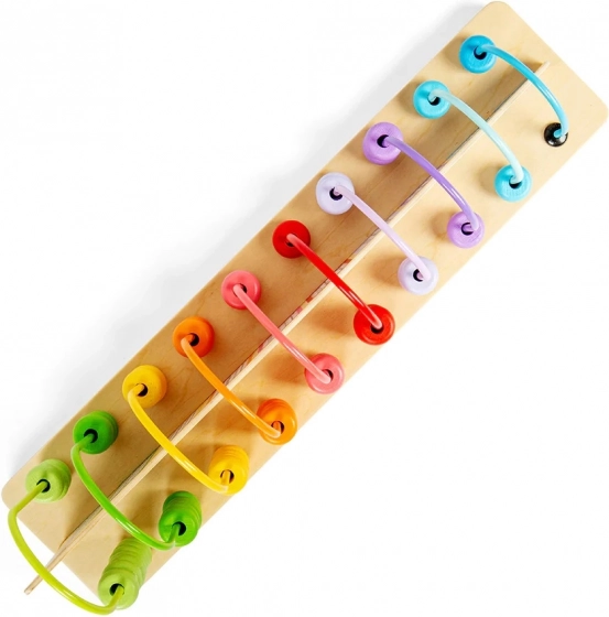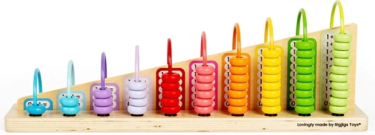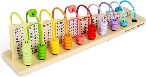 Dieses hölzerne Regenbogen-Rechenbrett ist ein hervorragendes Werkzeug zum Lernen von Addition und Subtraktion. Kinder trainieren mit diesem Spielzeug ihren kognitiven Fortschritt, verbessern ihre Hand-Augen-Koordination und erwerben Geduld und logisches Denken. Das Rechenbrett umfasst insgesamt 56 bunte Teile, inklusive 55 Perlen und einem Holzpanel.