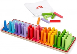 Regenbogen-Rechenstäbchen sind die ideale Wahl für Kinder ab 18 Monaten, die Zählen und Farben erkennen lernen möchten. Das Spielzeug enthält ein hölzernes Brett mit farblich markierten Bereichen und 55 bunte Stäbchen, die in diese Bereiche eingefügt werden können. Alle Teile dieses Produkts sind aus FSC®-zertifiziertem Holz gefertigt und daher nicht nur sicher für Kinder, sondern auch umweltfreundlich.