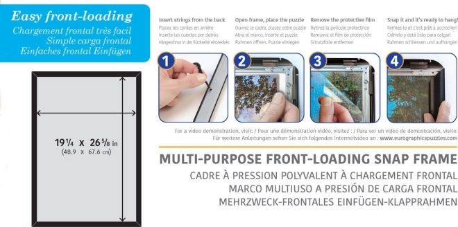 Entdecken Sie die effiziente Art, Ihre Puzzle mit den Schnapprahmen von Eurographics zu präsentieren. Dieser innovative Schnapprahmen ist für Puzzle mit den Maßen 48,89 x 67,63 cm konzipiert, was verschiedene Puzzlearten wie Eurographics 1000 Teile oder Eurographics XL 500 Teile umfasst. Mit der Möglichkeit, sowohl hochkant als auch quer aufgehängt zu werden, bietet er flexible Platzierungsoptionen.