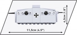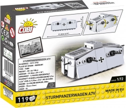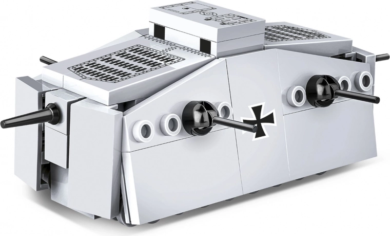 Der Sturmpanzerwagen A7V war der erste deutsche Panzer, der gegen Ende des Ersten Weltkriegs eingesetzt wurde. Dieses ikonische gepanzerte Fahrzeug mit einer Besatzung von bis zu 18 Soldaten führte eine 57-mm-Nordfeld-Kanone und sechs MG 08. Das COBI-Modell im Maßstab 1:72 mit einer Länge von ca. 11,5 cm bewahrt die typischen Merkmale des Originals und überzeugt mit präzisen Drucken von Kreuzen, Gittern und Luken.