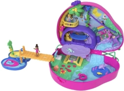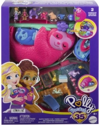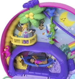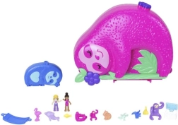 Erleben Sie kreatives Spielen mit dem Polly Pocket Fauler Familien-Spielset, das sich in ein tropisches Paradies mit Mikropuppen und einer Vielzahl von lustigen Accessoires öffnet.
