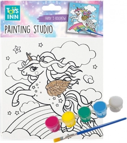 • Leinwand 15×15 cm mit Motivvorlage (Einhorn und Regenbogen)