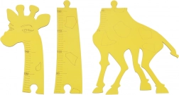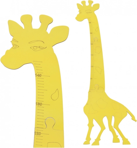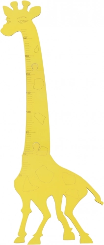 Die gelbe Giraffe mit gut sichtbaren Höhenmarkierungen bringt Farbe ins Zimmer und motiviert Kinder zum regelmäßigen Messen.