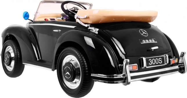 Genießen Sie eine einzigartige Fahrt im Geist der Klassik. Das Kinderauto MERCEDES-BENZ 300S im elegant lackierten schwarzen Finish kombiniert zeitloses Aussehen mit moderner Technik. Dank zwei 35-W-Motoren und einer 12 V/10 Ah Batterie beherrscht es eine sanfte Fahrt vorwärts und rückwärts, unterstützt durch die komfortable Federung der Vorderachse.