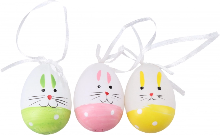 Diese stilvollen dekorativen Eier sind aus robustem Kunststoff gefertigt und bieten leuchtende Farben, die eine fröhliche Atmosphäre in Ihr Zuhause oder Büro bringen. Dank der Kunststoffkonstruktion sind sie langlebig und wiederverwendbar.