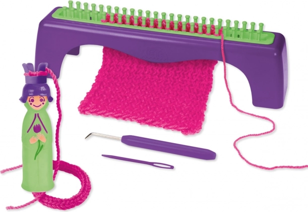 • Komplette Ausstattung: Strickpüppchen, Stricktisch, Häkelnadel, Plastiknadel und Wolle