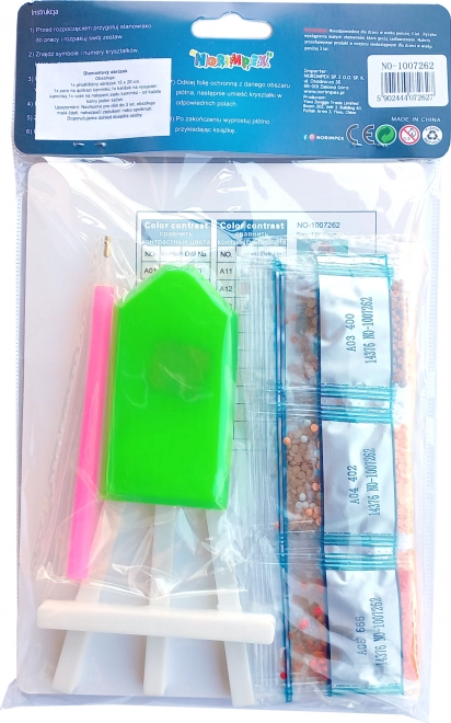 Entdecken Sie eine entspannende und unterhaltsame Kreativtechnik mit Diamantmalerei im Format 15 × 20 cm. Jedes Feld auf der Leinwand ist mit einem Symbol, Zahlencode oder Buchstaben markiert, sodass Sie leicht erkennen, wohin die einzelnen Steinchen gesetzt werden. Dank des beiliegenden Ständers können Sie das fertige Werk sofort ausstellen.