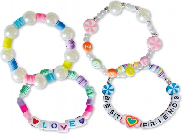 Das Perlen- und Buchstabenset bietet tollen Spaß und fördert Geduld sowie Kreativität. Die Armbänder, die Sie gestalten, werden zum perfekten modischen Accessoire oder zu einem Geschenk für einen lieben Menschen. Das Set enthält: Buchstabenperlen, Kunststoffperlen, perlmuttartige Perlen, silberne Kunststoffperlen, rosa gewachste Schnur, weißes Gummiband, elastische Schnur