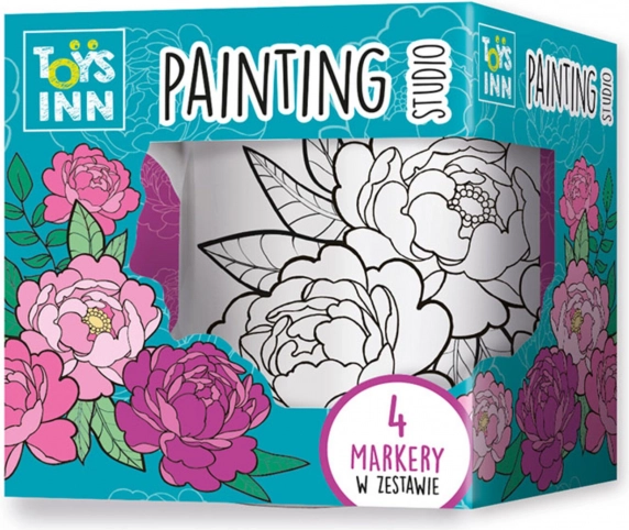 Entdecken Sie kreativen Spaß mit der Keramik-Tasse zum Ausmalen mit Pfingstrosenmotiv. Kinder können ihre Tasse mit vier bunten Filzstiften persönlich gestalten: Gelb, Pink, Grün und Violett.