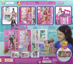 Dieses farbenfrohe, leicht faltbare BARBIE Haus macht jeden Tag zum Abenteuer. Kinder lieben die durchdachten Details wie den ausziehbaren Küchentisch, das gemütliche Schlafzimmer im Obergeschoss und die Ecke für Filmabende mit Freunden.