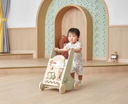 Dank der stabilen Konstruktion und leicht laufender, geräuscharmer Räder unterstützt der Wagen die Verbesserung von Gleichgewicht und Koordination. Auf der Rückseite befindet sich ein praktischer Stoff-Stauraum für Spielzeug, damit Kinder ihre Schätze immer dabeihaben.