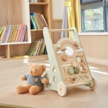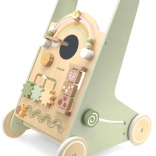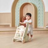 Die robuste Holzkonstruktion und die leichtlaufenden Räder helfen dem Kind, sicher und geschützt Gehen und Gleichgewicht zu üben.