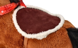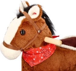 Das braune Schaukelpferd mit weicher Plüschoberfläche, Sattel und dekorativem Halstuch ist der ideale Begleiter für den Alltag. Dank der stabilen Holz-Wippe kann das Kind sicher schaukeln, die Motorik fördern und die Koordination üben.