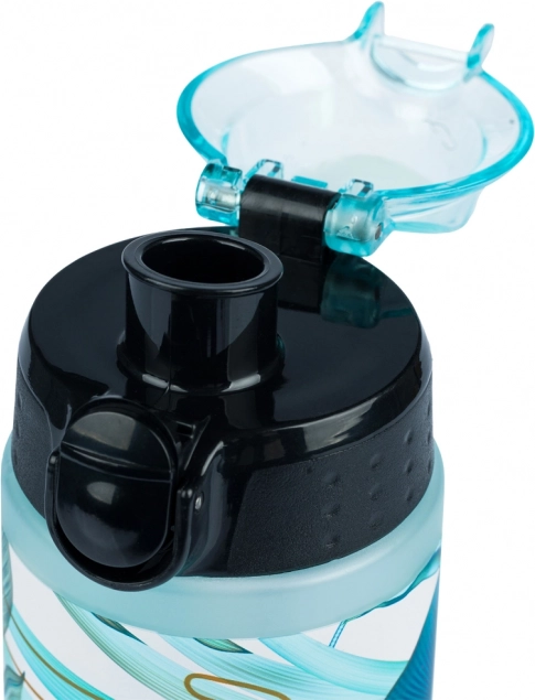 Verriegelbarer Flip-Verschluss mit Knopf verhindert Auslaufen in der Tasche und ermöglicht komfortables Trinken mit einer Hand.