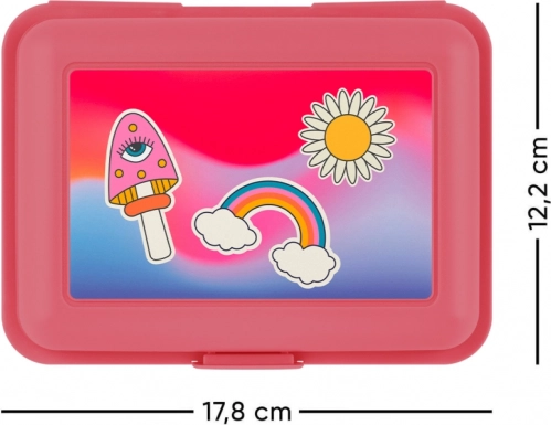 Diese farbenfrohe BAAGL-Lunchbox überzeugt mit einem verspielten Regenbogendesign und bietet Kindern eine praktische und hygienische Aufbewahrung für ihr Essen. Der einfache Schnappverschluss hält den Inhalt sicher an Ort und Stelle, während die innere Trennwand Obst, Gebäck oder kleine Leckereien voneinander separiert.