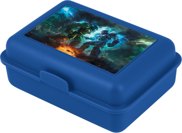 Wir präsentieren eine innovative Brotzeitbox für alle Liebhaber von Sci‑Fi und Robotern. Diese blaue Kunststoff‑Lunchbox kombiniert Stil mit Praktikabilität. Sie ist mit einem sicheren Einrastverschluss ausgestattet, der dafür sorgt, dass Ihr Essen sicher verwahrt bleibt. Mithilfe der Trennwände lassen sich verschiedene Speisen einfach separieren – für ein sauberes und gut organisiertes Mittagessen.