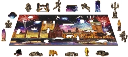 Dank des Laserschnitts haben einige Teile die Form bekannter Gebäude, Gegenstände oder Tiere, was den Spaß und die Schwierigkeit beim Puzzlen erhöht.