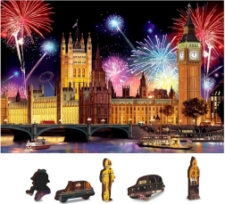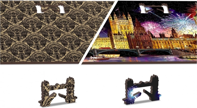 Das Puzzle bietet zwei Möglichkeiten des Puzzelns - entweder nach dem Bild von Nacht London oder nach dem sich wiederholenden Muster auf der Rückseite.