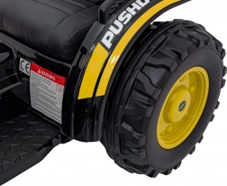 Setzen Sie den kleinen Baumeister ans Steuer seiner eigenen Maschine. Dieser elektrische Kinder‑Bulldozer in eleganter gelb‑schwarzer Farbkombination verfügt über leistungsstarke 2×35‑W Motoren und einen 12 V 7 Ah Akku, sodass er mit normalem Gelände zurechtkommt. EVA‑Räder dämpfen Unebenheiten und die Bodenfreiheit 15 cm hilft beim Fahren im Garten. Sanftes Anfahren sorgt für ein weiches und sicheres Losfahren ohne Ruckeln.