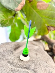 Aerodynamische Form und Saugnapfspitze für einen stabilen Aufprall und zuverlässiges Haften an Glas, Fliesen oder lackierten Oberflächen.
