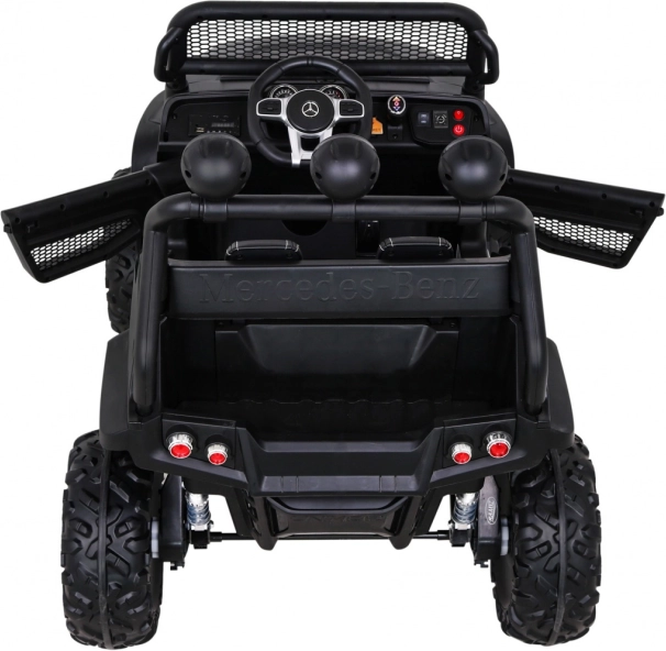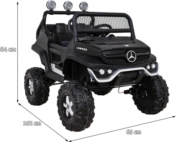 Mit dem vierrädrigen elektrischen Kinderwagen Mercedes Benz Unimog stürmen Ihre Kinder stilvoll ins Gelände. Das Modell ist mit starken Motoren ausgestattet und bietet die Möglichkeit, zwischen zwei oder vier Motoren zu fahren. Alles wird durch ein Sicherheitssystem mit einer Fernsteuerung mit STOP-Taste gewährleistet.