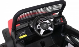 Der Mercedes Benz Unimog ist ein elektrisches Auto für Kinder, das dank seines starken 4x4-Antriebs ein aufregendes Fahrerlebnis bietet. Das Design ist von echten Offroad-Fahrzeugen inspiriert und enthält realistische Details, einschließlich LED-Lichtern und dem ikonischen Markenlogo. Mit der Möglichkeit, zwischen Zwei- oder Vierradantrieb zu wechseln, bietet es Flexibilität für verschiedene Terrains.