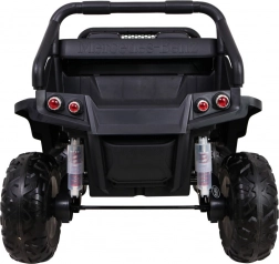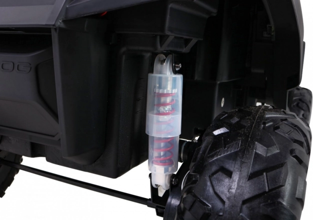 Sicherheitsgurte und ein komfortabler Sitz aus Kunstleder gewährleisten Komfort und Sicherheit. Das Auto enthält LED-Lichter für die Beleuchtung der Straße vorne und hinten und ist zusätzlich mit einstellbarer hinterer Federung ausgestattet, um Hindernisse leicht zu überwinden.