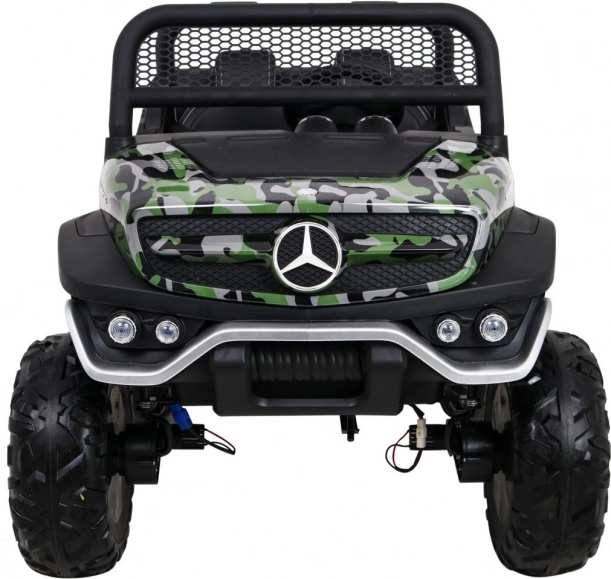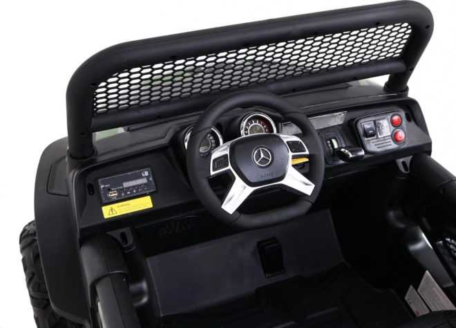Der Unimog für Kinder ist mit vier starken Motoren ausgestattet, die einen reibungslosen Betrieb selbst auf unebenen Wegen gewährleisten. Dank MicroSD-Speicher, USB und Bluetooth kann das Kind während der Fahrt seine Lieblingsmusik hören.