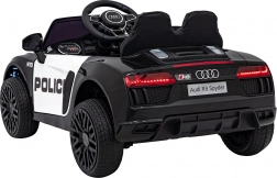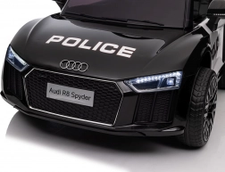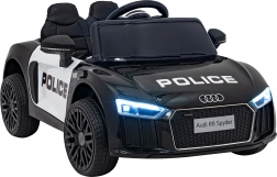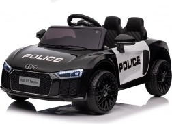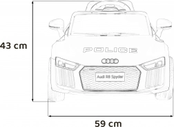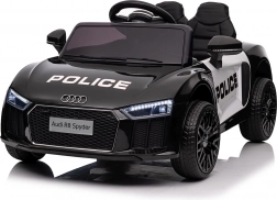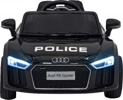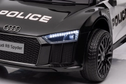Das Polizei-Kinderauto AUDI R8 ist für maximalen Spaß und Sicherheit konzipiert. Dank leistungsstarker 2× 35-W-Motoren und der Doppelbatterie genießen Kinder längere Fahrten, während die Eltern über die 2,4G-Fernbedienung mit drei Geschwindigkeiten und der Not-STOP-Taste jederzeit die Kontrolle behalten. Der realistische Look wird durch LED-Leuchten vorne und hinten, zu öffnende Türen und einen bequemen Sitz aus Öko-Leder mit Sicherheitsgurten ergänzt.