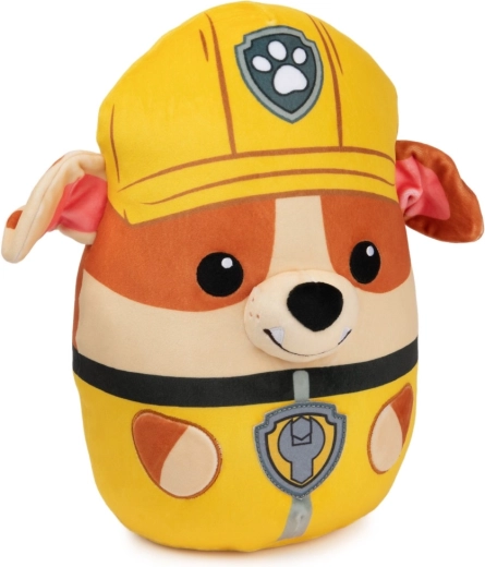 Das Plüschtier zeigt die Figur Rubble mit markanten Details wie Schirmmütze und Uniform, die jedes Kinderzimmer beleben.