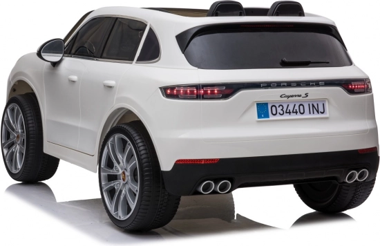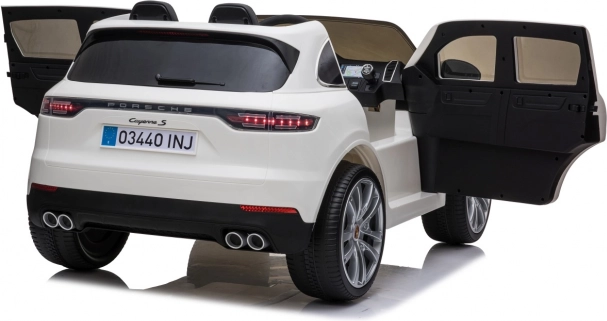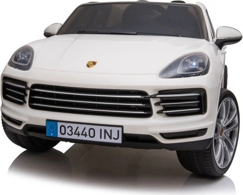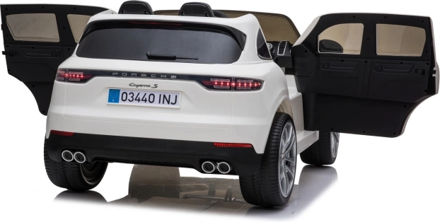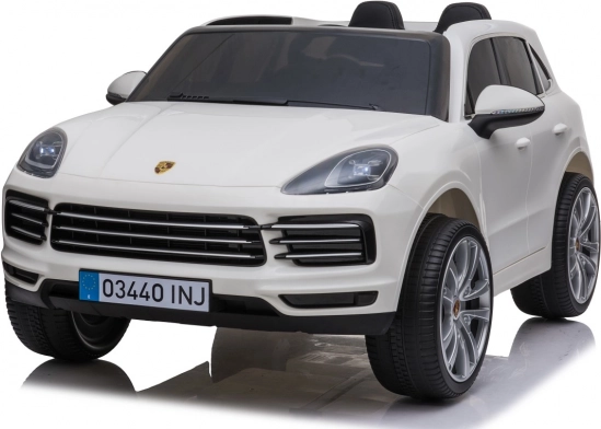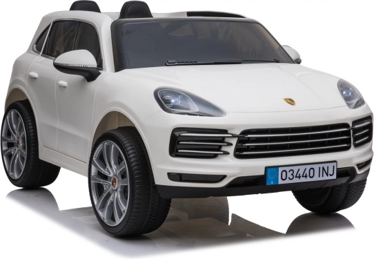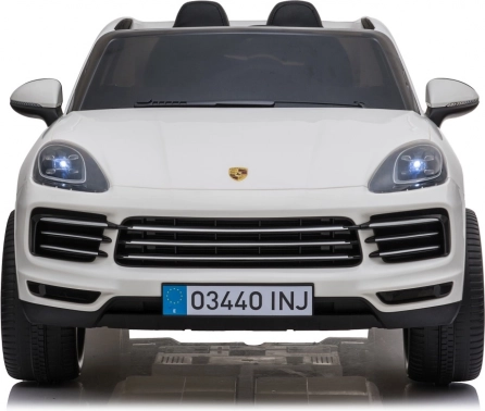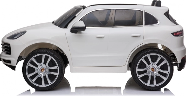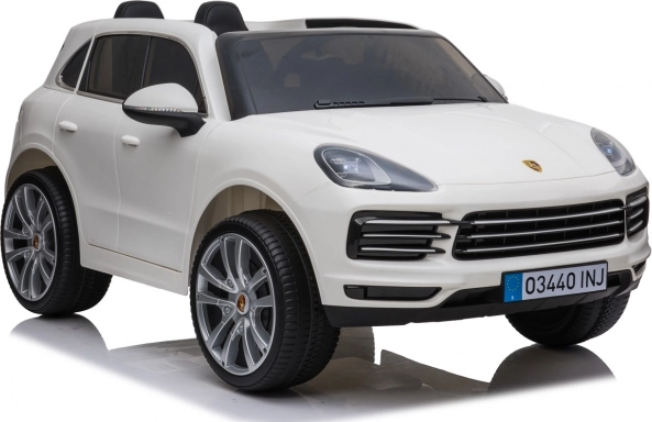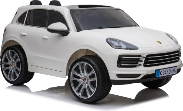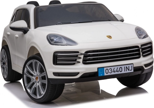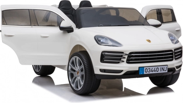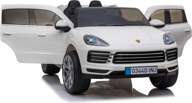 Elektrisches Kinderauto Porsche Cayenne S bietet kleinen Fahrern ein aufregendes Fahrerlebnis mit realistisches Design. Dieses weiße, vom Luxus-SUV inspirierte Modell ist mit LED-Beleuchtung, EVA-Reifen und einem Musikpanel ausgestattet, das das Abspielen beliebter Melodien ermöglicht.