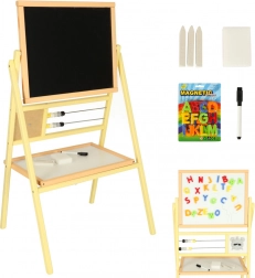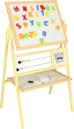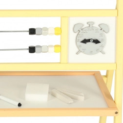 Im Lieferumfang sind auch Kreide, Schwamm, magnetische Buchstabenreihe und Stifte enthalten. Diese Tafel fördert die Entwicklung manueller Fähigkeiten, logischen Denkens und Kreativität von Kindern.