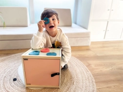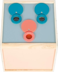 Diese moderne Holzsensorik- und Tastbox ist so konzipiert, dass sie die Sinne Ihres Kindes anregt. Mit zwei seitlichen Öffnungen und oberen aufklappbaren Klappen können Kinder auf verschiedene Arten erforschen - durch Berührung, Sehen, Hören und Riechen. Die Box ist hervorragend für die Entwicklung motorischer Fähigkeiten und eignet sich auch für ergotherapeutische Zwecke.