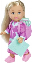 Die Evi Love Puppe ist bereit für die Schule mit allen nötigen Accessoires, die Kreativität und fantasievolles Spiel fördern. Sie ist in einem rosa-violetten Outfit gekleidet und hat Schulzubehör wie Schulranzen und Lehrbücher.