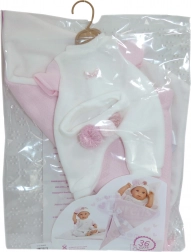 Dieses stilvolle Set für die Puppe umfasst ein bequemes Outfit und eine weiche Wickelunterlage, die an ein Hörnchen erinnert – eine großartige Wahl zum Zudecken und Beruhigen der Puppe während des Spiels. Dank der sorgfältigen Handarbeit aus Spanien überzeugt das Set mit feinen Details und angenehmen Materialien.