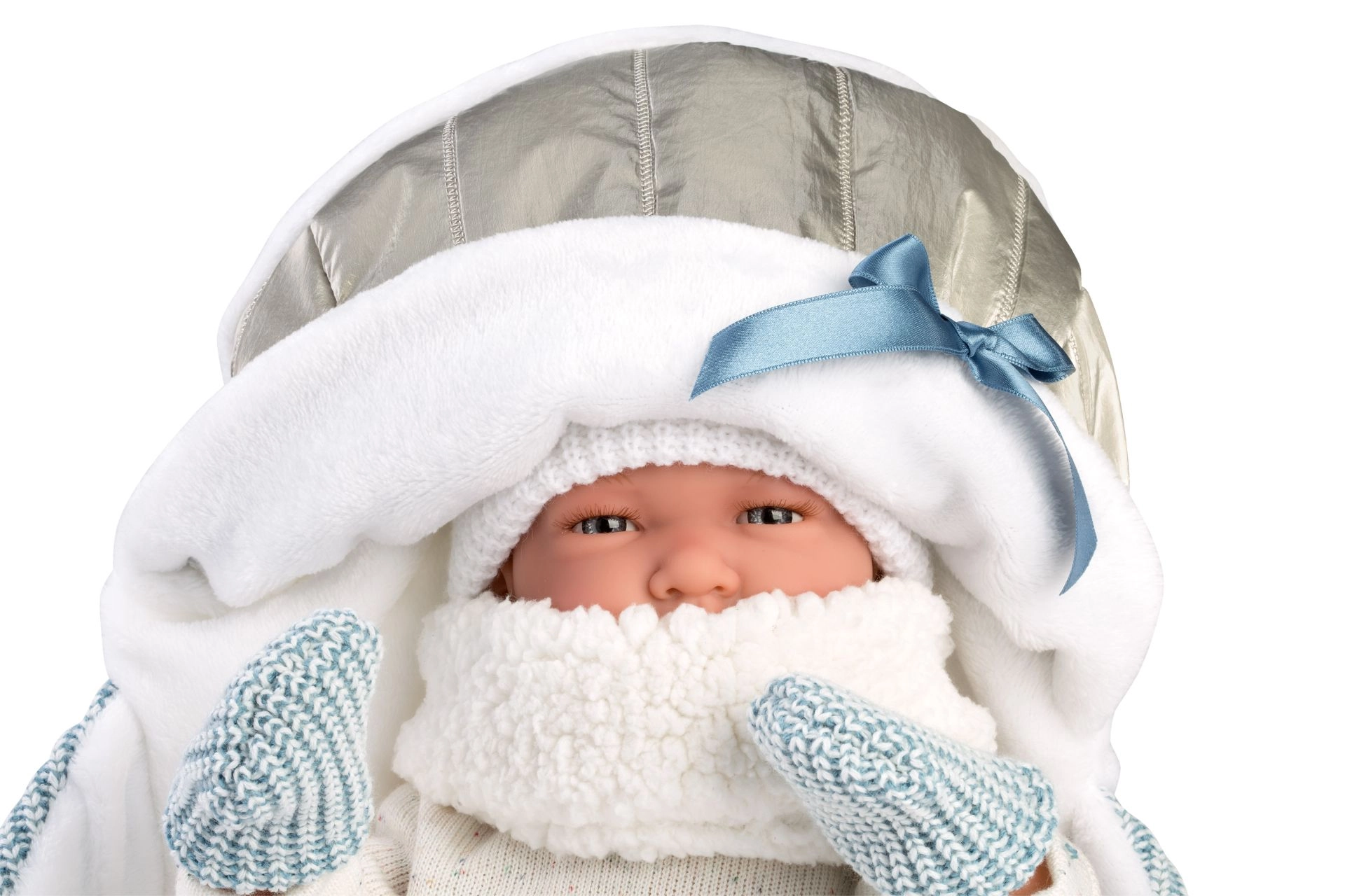Lege die Puppe bequem ab und nimm sie mit – die kuschelweiche Auflage mit Kapuze und praktischen Gurten schützt und erleichtert das Tragen.