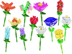 Stellen Sie ein Blumenarrangement aus Kunststoffteilen mit verschiedenen Farben und Formen zusammen. Jede Blume ist einzigartig und bietet endlose kreative Möglichkeiten.