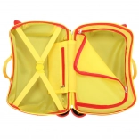 Das widerstandsfähige Kunststoffgehäuse, die Tragfähigkeit bis 20 kg und integrierte Trittflächen ermöglichen es dem Kind, bequem zu sitzen und zu rollen – ideal für Flughallen und Bahnhöfe. Das Innenleben in leuchtendem Gelb sorgt für einen verspielten Look und besseren Überblick über den Inhalt.