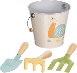 Lassen Sie Ihre Kinder die Freude an der Gartenarbeit mit diesem praktischen Gartengeräte-Set von Goki erleben. Jedes der Werkzeuge hat einen Holzgriff, der bequem und sicher für Kinderhände ist.