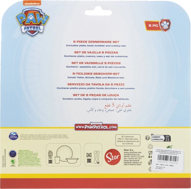 Dieses farbenfrohe 5-in-1 Kinder-Geschirrset mit PAW PATROL-Motiv sorgt für mehr Spaß am Tisch und fördert die Selbstständigkeit Ihrer Kinder. Die hochwertige Verarbeitung von STOR und die durchdachte Zusammenstellung der einzelnen Teile machen es zur idealen Wahl für den täglichen Gebrauch.