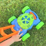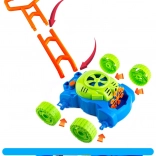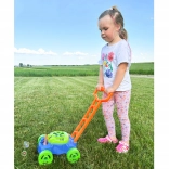 Der Rasenmäher imitiert das Rattern einer echten Maschine, ergänzt Blubbergeräusche und spielt zur maximalen Unterhaltung eine fröhliche Melodie ab.