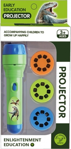 Bildprojektor Dino bietet Unterhaltung und Bildung in einem. Er enthält 24 Dias, die Kinder beim Projizieren betrachten können.