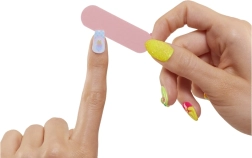 In der Verpackung findest du mehr als 15 Überraschungen, darunter Klebenägel, eine Feile und Nagellacke. Jede Puppe hat ein thematisch anderes Studio. Du kannst deine Nägel nach deinem Geschmack mit Aufklebern und Glitzer verzieren.
